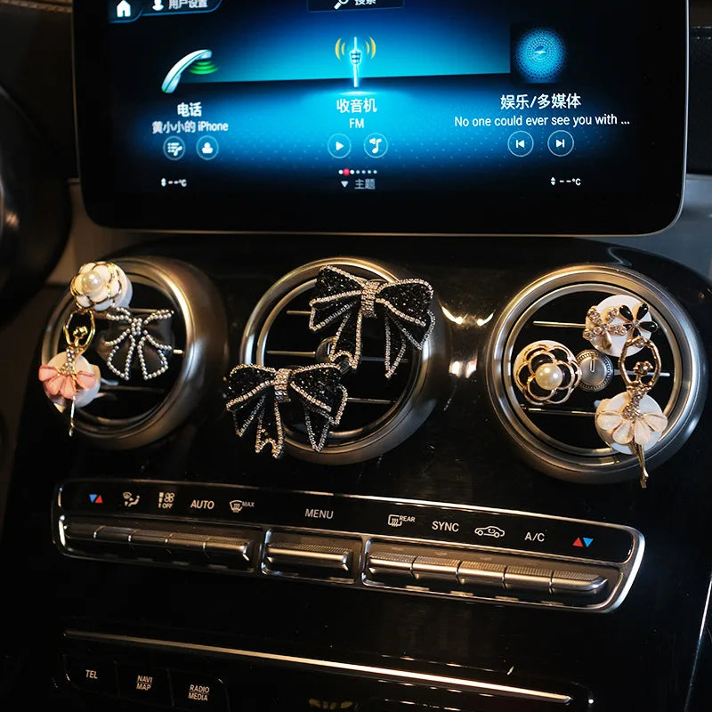 1 set Diamond Bow Flower Air Freshener Car Outlet Aromatherapy Clip Car Perfume Solid Diffuser Decoration Clips Auto Accessories