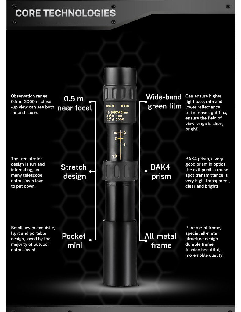 10-30×25 Zoom HD Portable Strong Binoculars Long Range Professional Spyglass Monocular Telescope Low Night Vision for Hunting