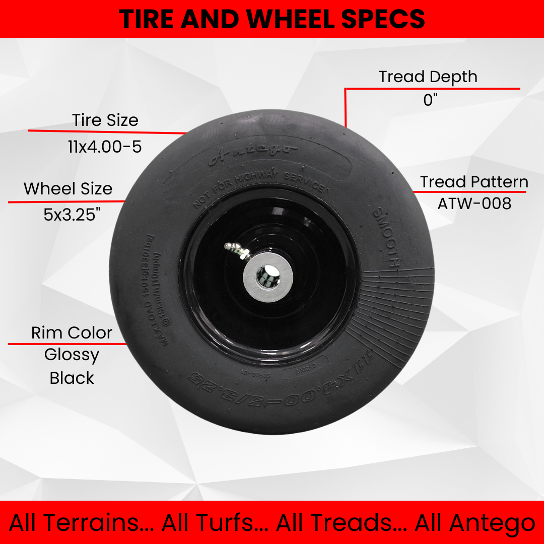 11x4.00-5 Flat Proof, Smooth Semi Pneumatic Assembly (Set of 2)