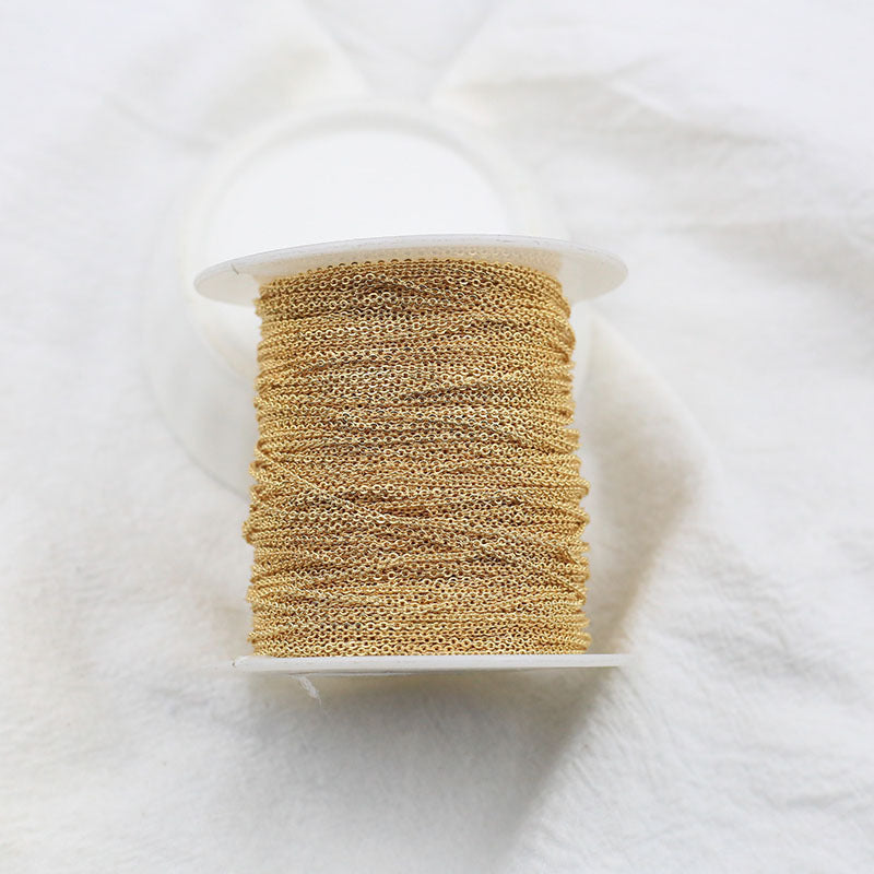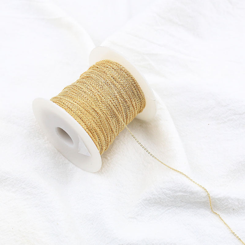 Our 18K Gold Plated Slim Chain is made from high-quality copper and features a luxurious 14K gilded finish. Available in three sizes—1mm, 1.5mm, and 2mm—each measuring at 1 meter long, you can choose the perfect thickness to suit your style. This chain is not just a piece of jewelry; it’s a statement of sophistication.
