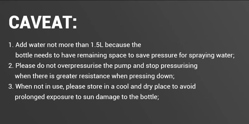 Do not fill beyond 1.5L to avoid auto-spraying.
