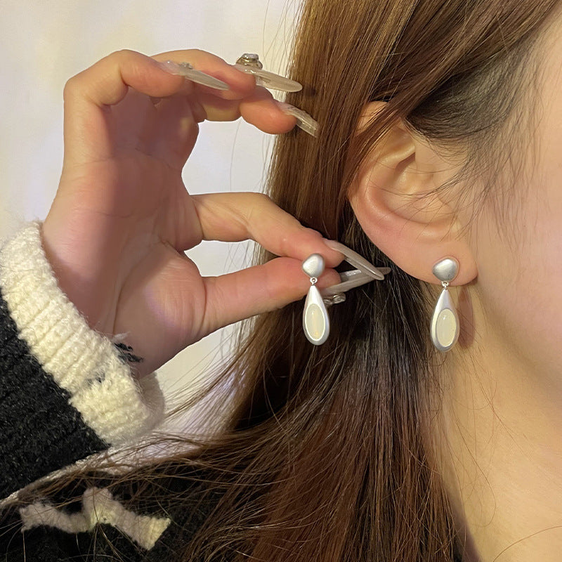 The earrings come in two eye-catching color options: bold black and pristine white. Both styles feature a stylish oval water drop shape that beautifully flatters your neckline. Their geometric design lends a contemporary flair, making them suitable for both casual outings and formal occasions.