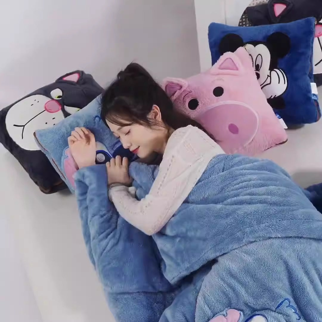 Double sided Arctic fleece pillow with embroidered fabric, dual-use office car nap blanket cushion