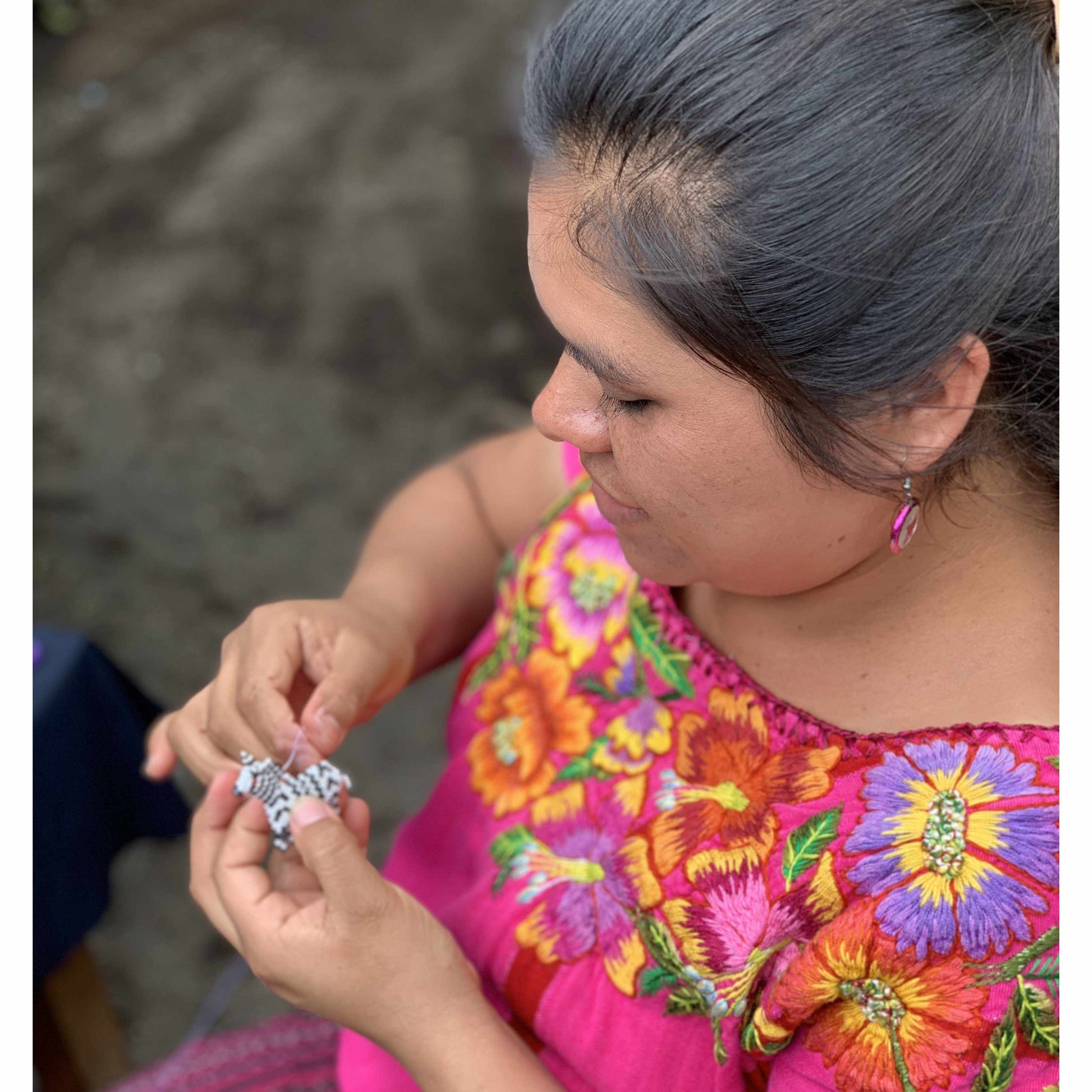 Experience true artistry with our handmade keychains crafted by Claudia and her family in the highlands of Guatemala, using tiny glass seed beads. Each keychain is a testament to the skill and talent of our expert artisans, who have honed their craft for years to create these intricate designs from memory. Our eco-friendly keychains are filled with recycled plastic bags to keep their shape.