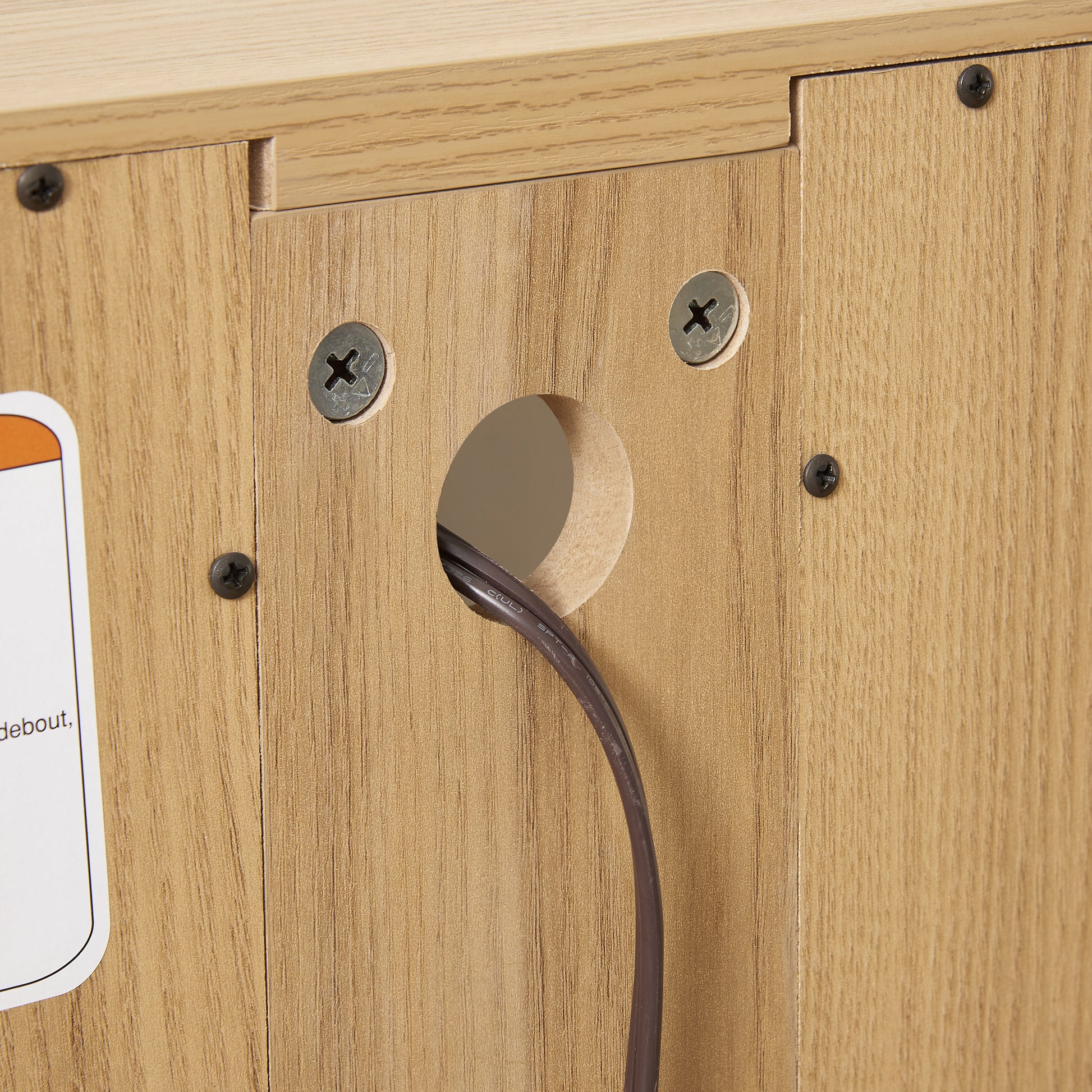 The power supply of this glass cabinet is plug-in, and the design of the wire hole on the back panel makes the cabinet look more aesthetically pleasing.