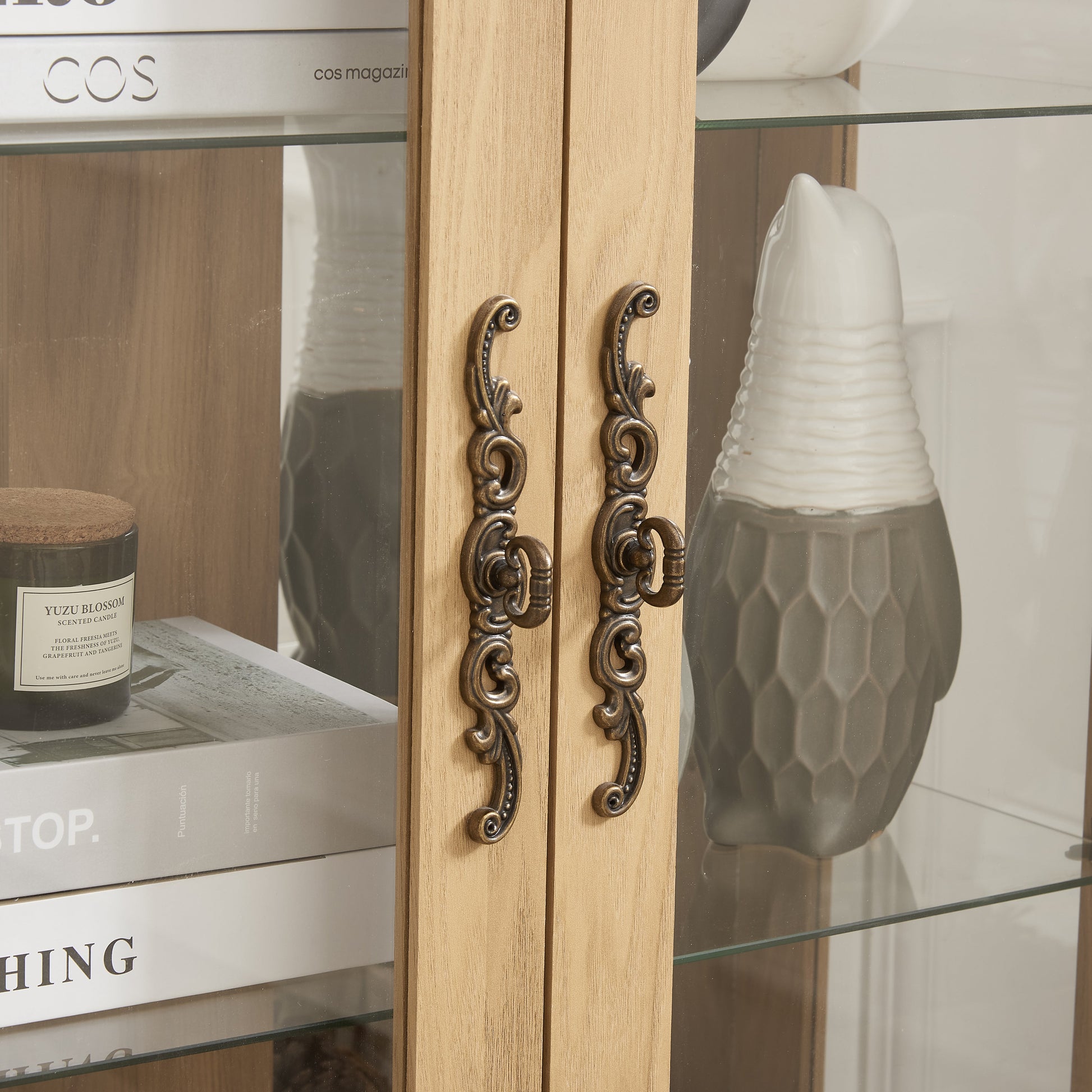American retro style Glass cabinet:Crafted with curved legs and metal handles, this cabinet exudes a touch of classical beauty and vintage charm. Its timeless style allows it to seamlessly fit into any corner, bringing an eternal sense of elegance to your space.