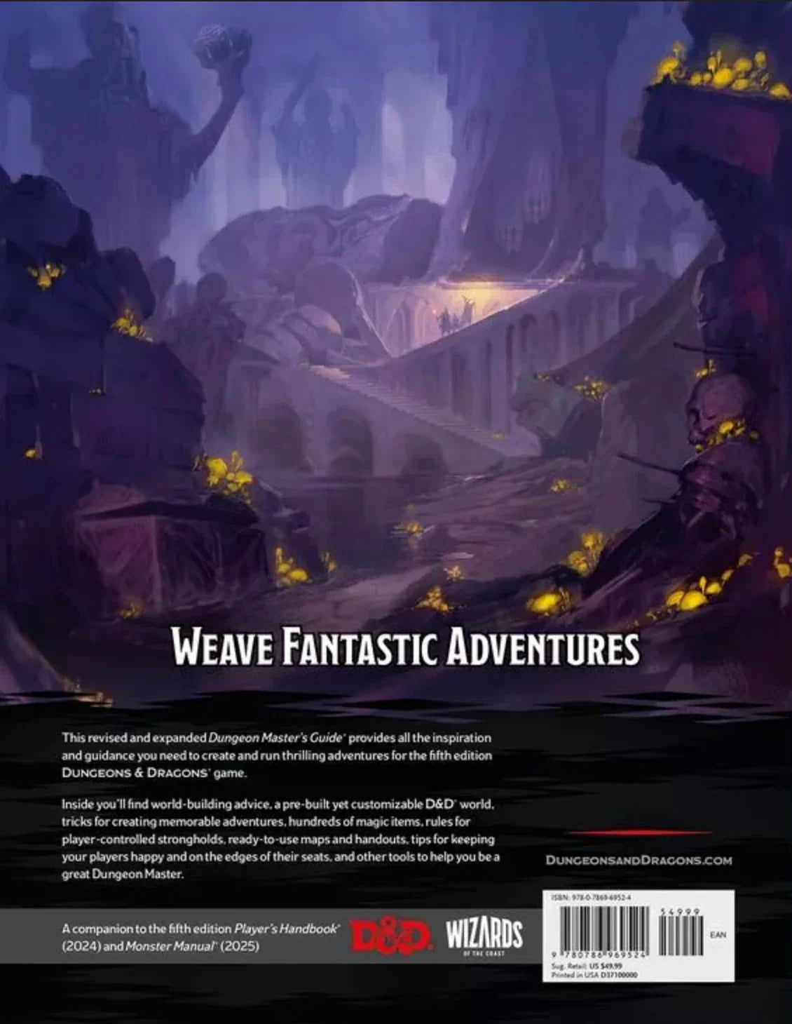 Weave legendary stories in the world's greatest roleplaying game. All you need to run a Dungeons & Dragons game is your imagination, some dice, and this book. The Dungeon Master's Guide teaches you how to how to run D&D adventures for your players. How to invent monsters for them to fight, mysteries for them to solve, and fantasy worlds for them to explore. The Dungeon Master's Guide is the one book to rule them all, the most comprehensive and powerful set of resources needed to run a game of D&D. . .