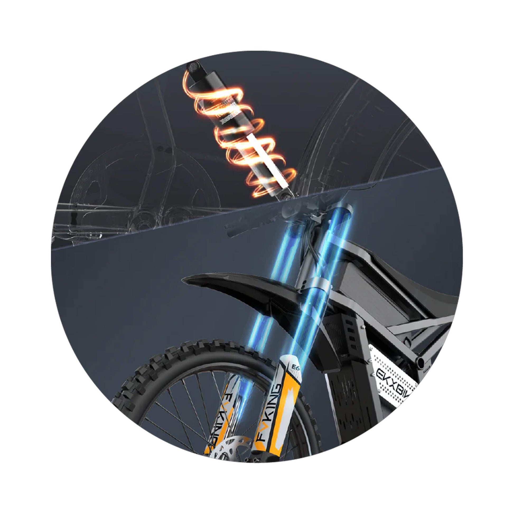 Cut through rugged trails and conquer mountains with the EKX E6 Premium Electric Off-Road Mountain Dirt Bike. Designed for the adventurous spirit, this powerful 3000W beast blends cutting-edge innovation with durability. Its high-carbon steel frame provides unmatched strength and agility, letting you ride harder and faster without compromising safety or performance. Take on unpredictable terrains knowing the EKX E6 was built to keep up with your wildest adventures.