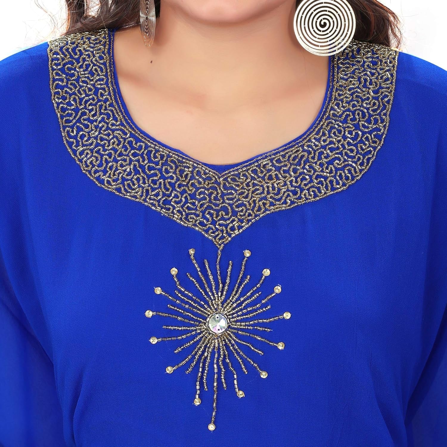 Experience timeless elegance with this stunning kaftan, exquisitely adorned with a dazzling mix of rhinestones, beads, crystals, and sequins. Each piece is meticulously hand-embroidered by skilled artisans, reflecting the rich cultural heritage and artistry.