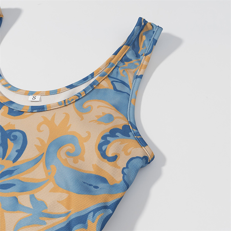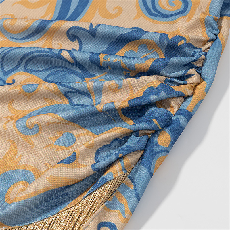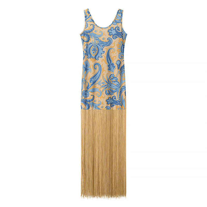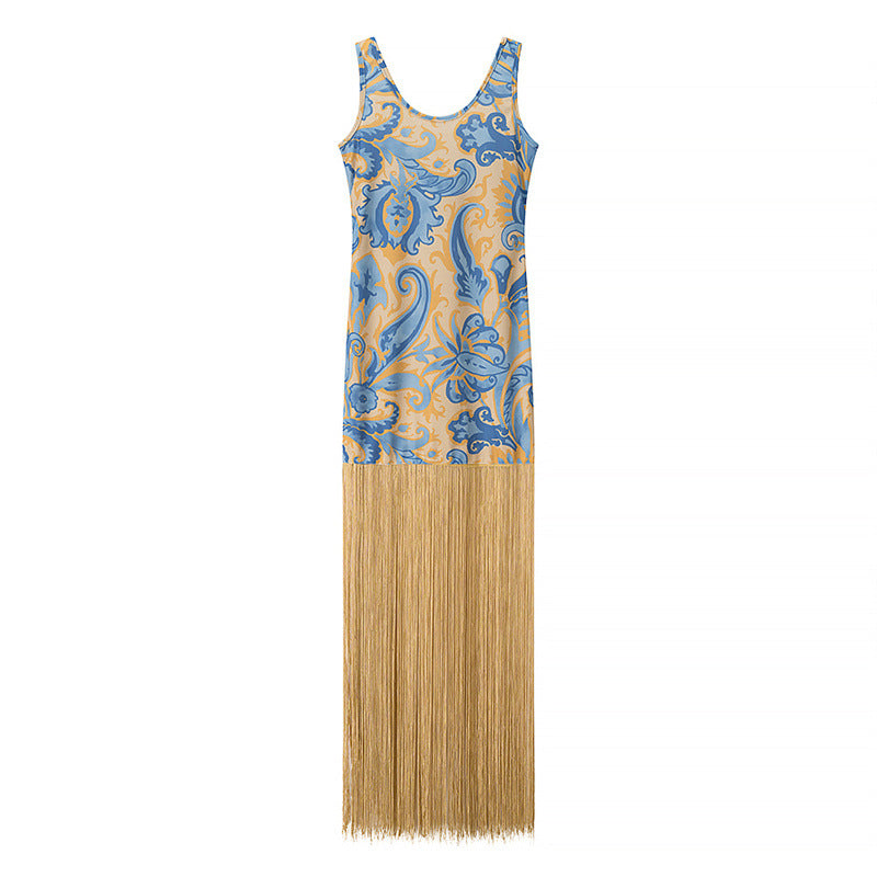 Elegant Sleeveless Printed Tassel Spliced Dress with Style