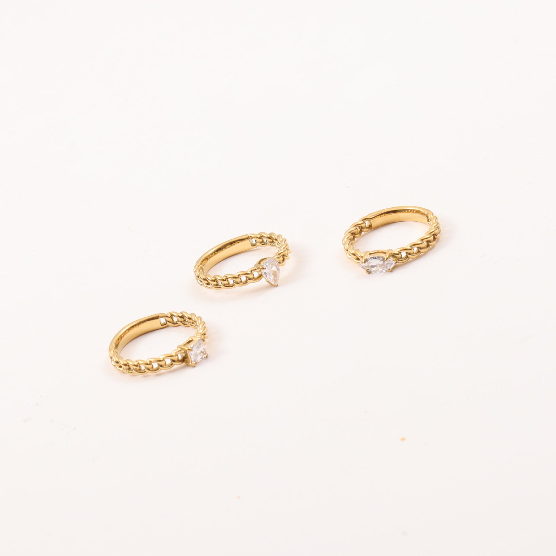 Each Gold Plated Titanium Steel Zircon Chain Ring is treated with a diamond process, enhancing its shine and ensuring it captures the light beautifully. This thoughtful design embodies the spirit of femininity and grace, making it an ideal gift for yourself or a loved one.