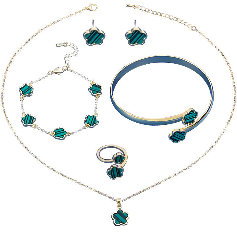 Introducing the stunning Lucky Five Petal Flower Five Leaves Flower Set, a delightful jewelry collection designed specifically for women who appreciate elegance and uniqueness. This exquisite collection features beautifully crafted pieces that will enhance any outfit, making you feel special every day.