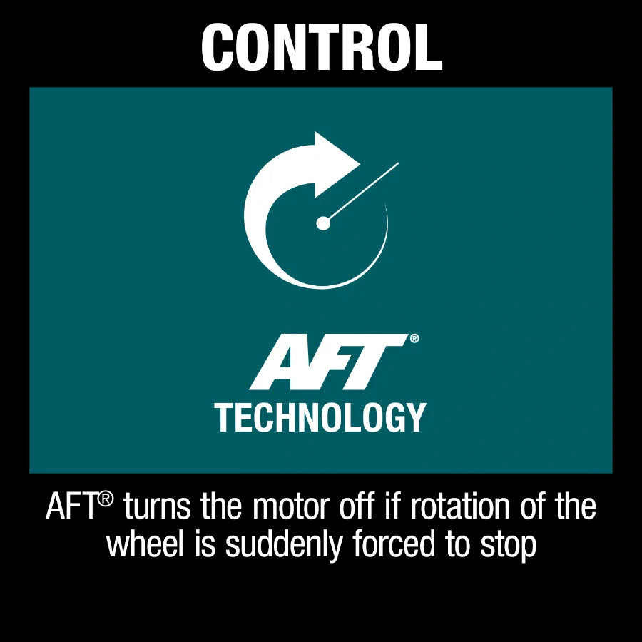 - Active Feedback-sensing Technology (AFT®) turns the motor off if rotation of the wheel is suddenly forced to stop