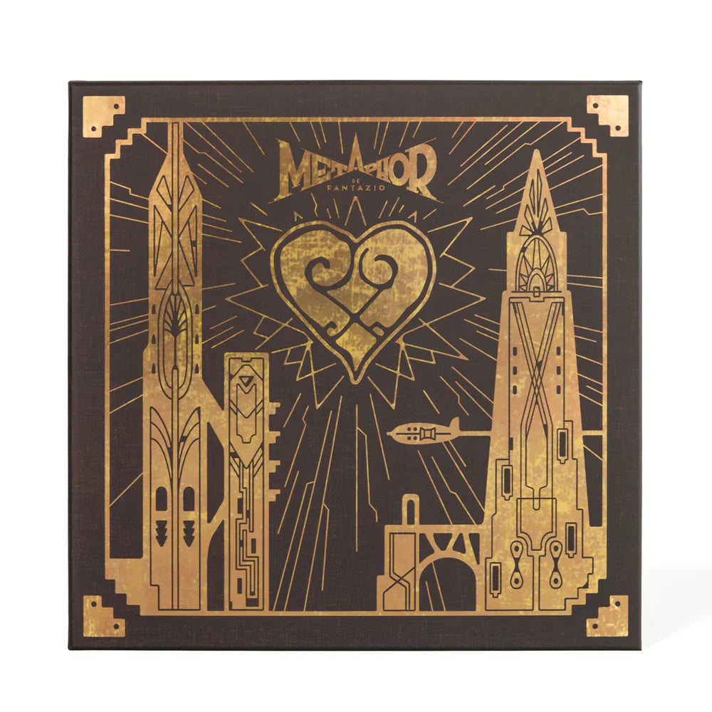 For the album artwork, we teamed up with longtime iam8bit artisan, Drew Wise, to create not just packaging, but a full-on Metaphor-inspired experience. The outer box features gold embossments and a leatherbound-style look, drawing from the storybook motif in the game. We extended this concept to the parchment-esque inner sleeves.