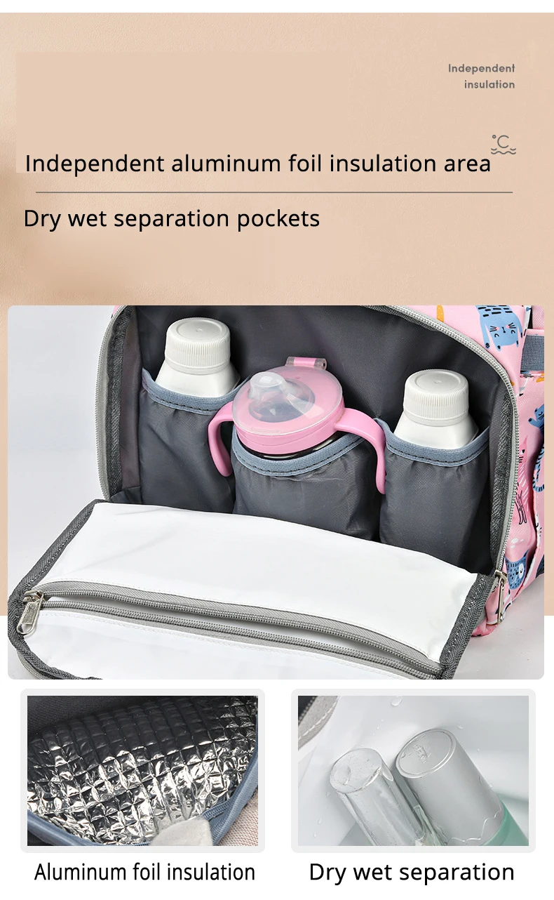 Capacity: Large capacity design — fits diapers, bottles, wipes, clothes, snacks, toys, and more