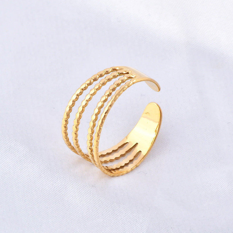 Introducing the stunning New Irregular Pattern Titanium Steel Ring, an exquisite piece of jewelry that seamlessly blends modern aesthetics with timeless elegance. This unique open-mouth design ring is crafted with precision from high-quality titanium steel, ensuring durability and comfort for everyday wear.