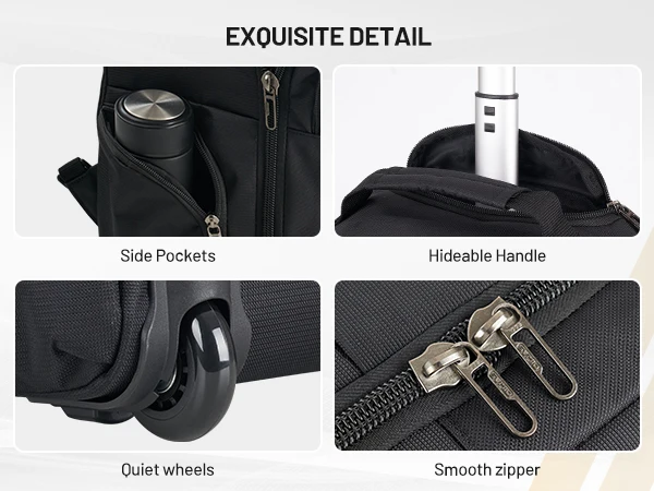 With smooth-rolling rubber wheels, a retractable metal handle, and a padded 15.6” laptop compartment, the AeroRoll whispers confidence — no matter where you’re headed. Whether it’s business, travel, or tomorrow’s big move, this bag rolls with purpose.