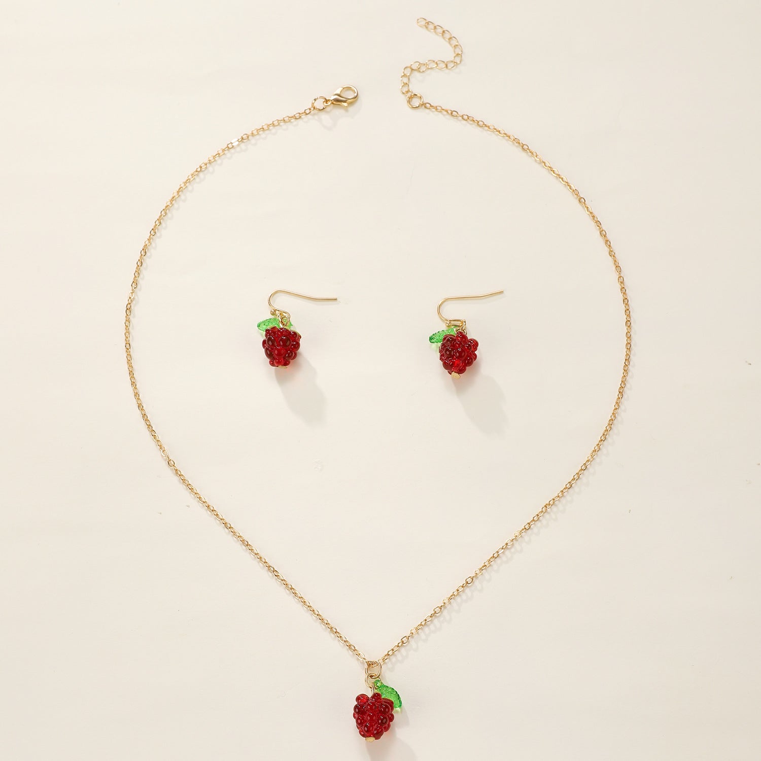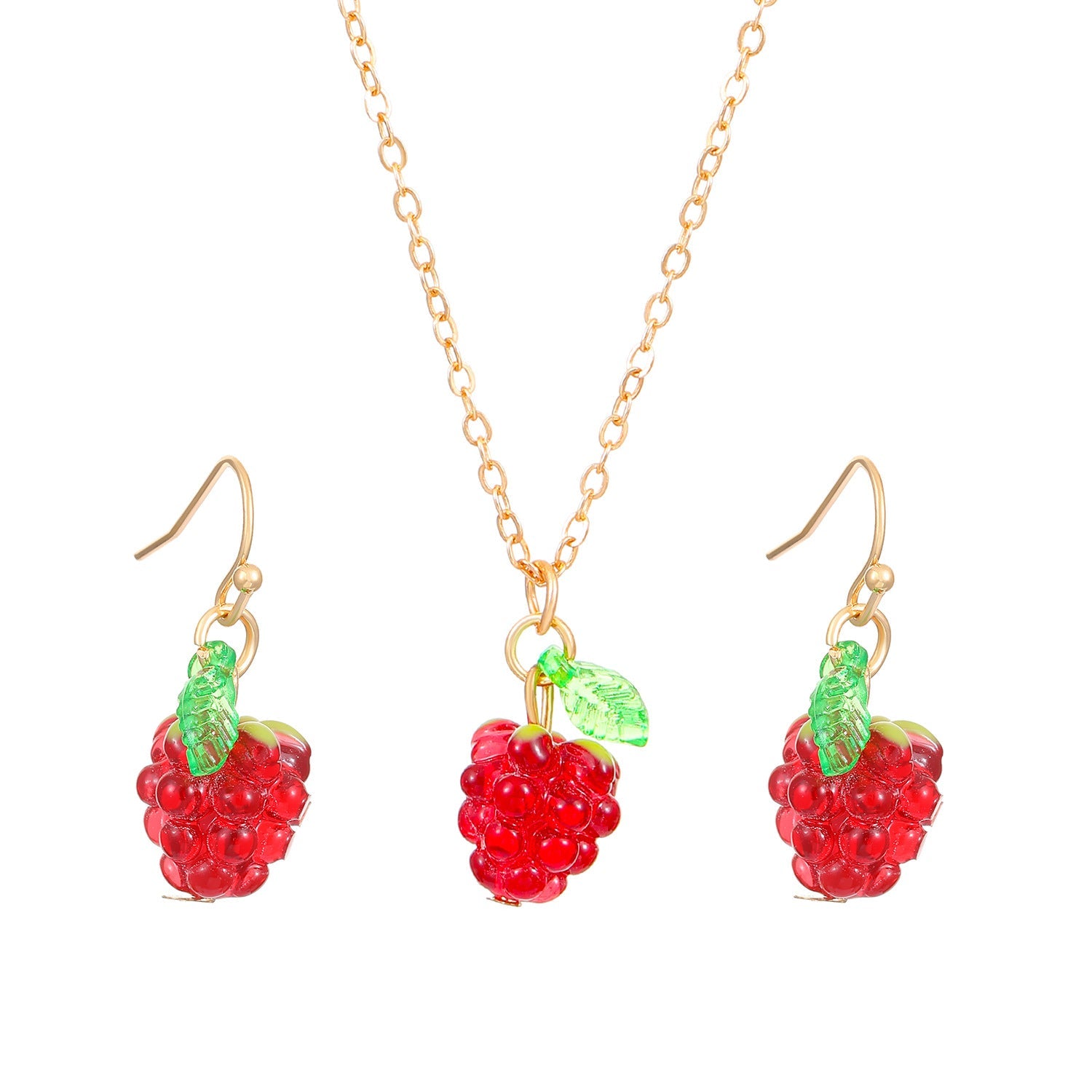 Retro Raspberry Raspberry Earrings And Necklace Set
