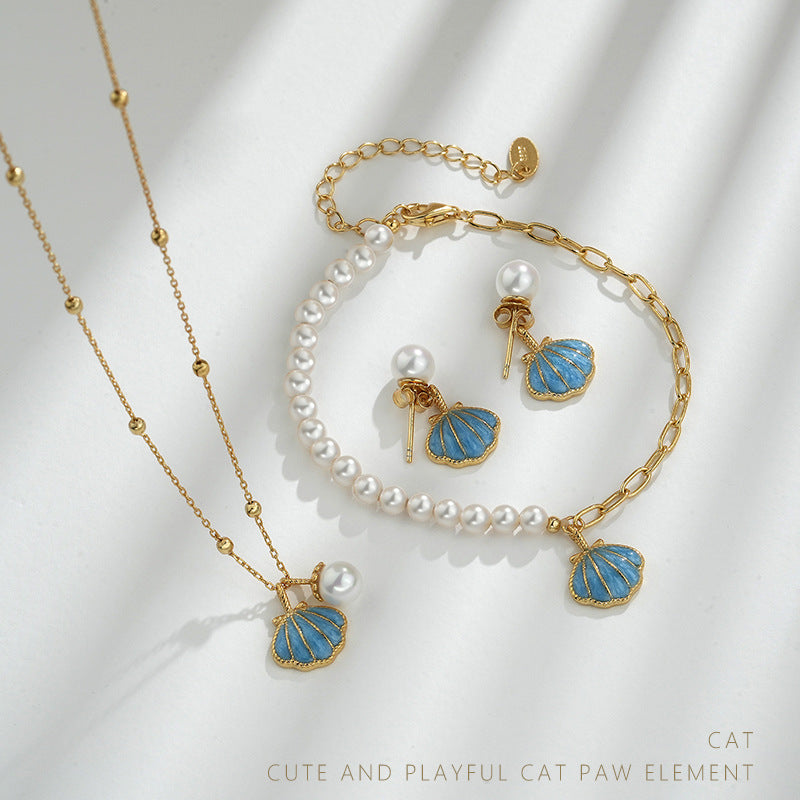 The pendant showcases a captivating shell design, enhancing your outfit with a touch of nautical charm. Available in a variety of colors, including the sophisticated gold and blue enamel and the elegant gold and white enamel, you can choose the one that perfectly complements your style.
