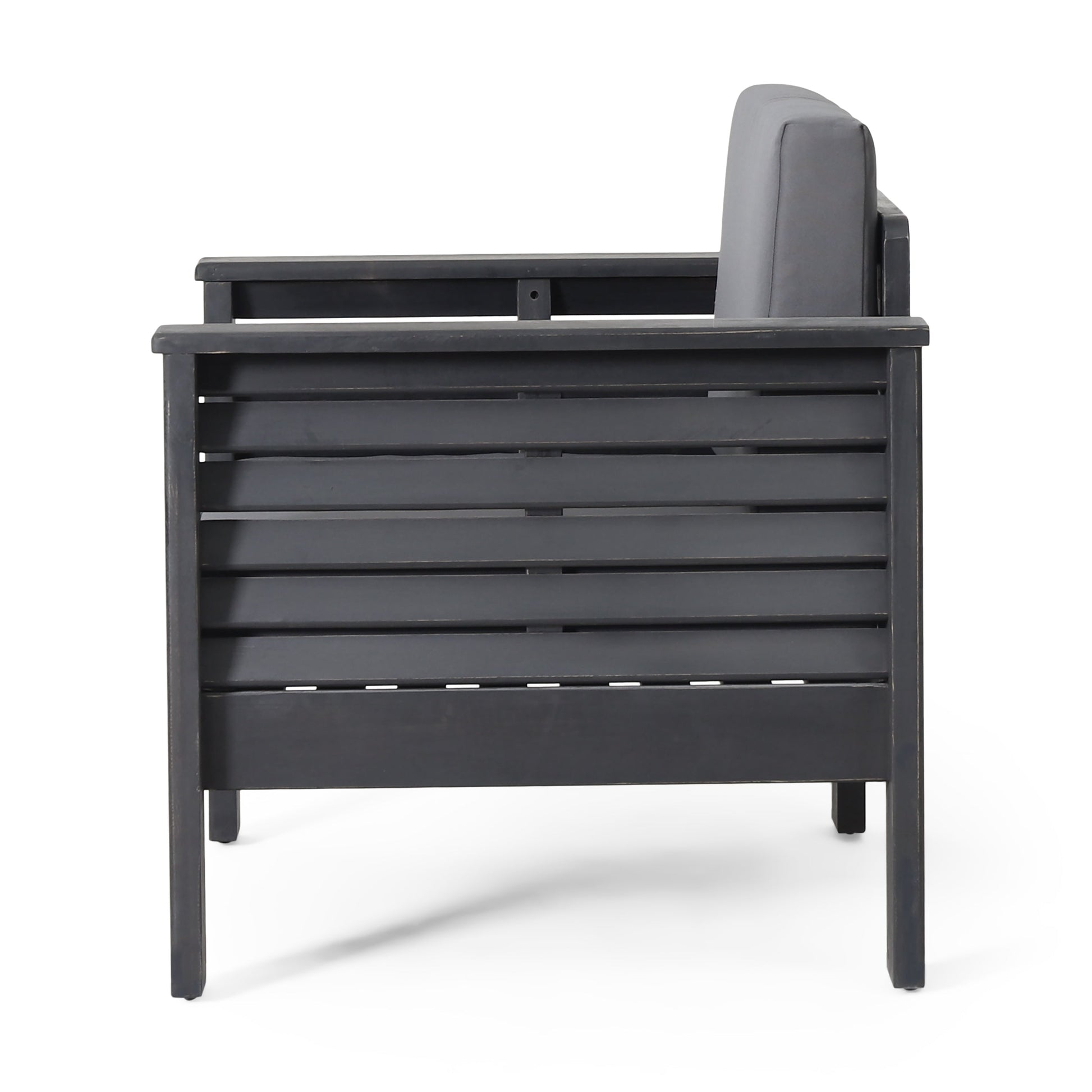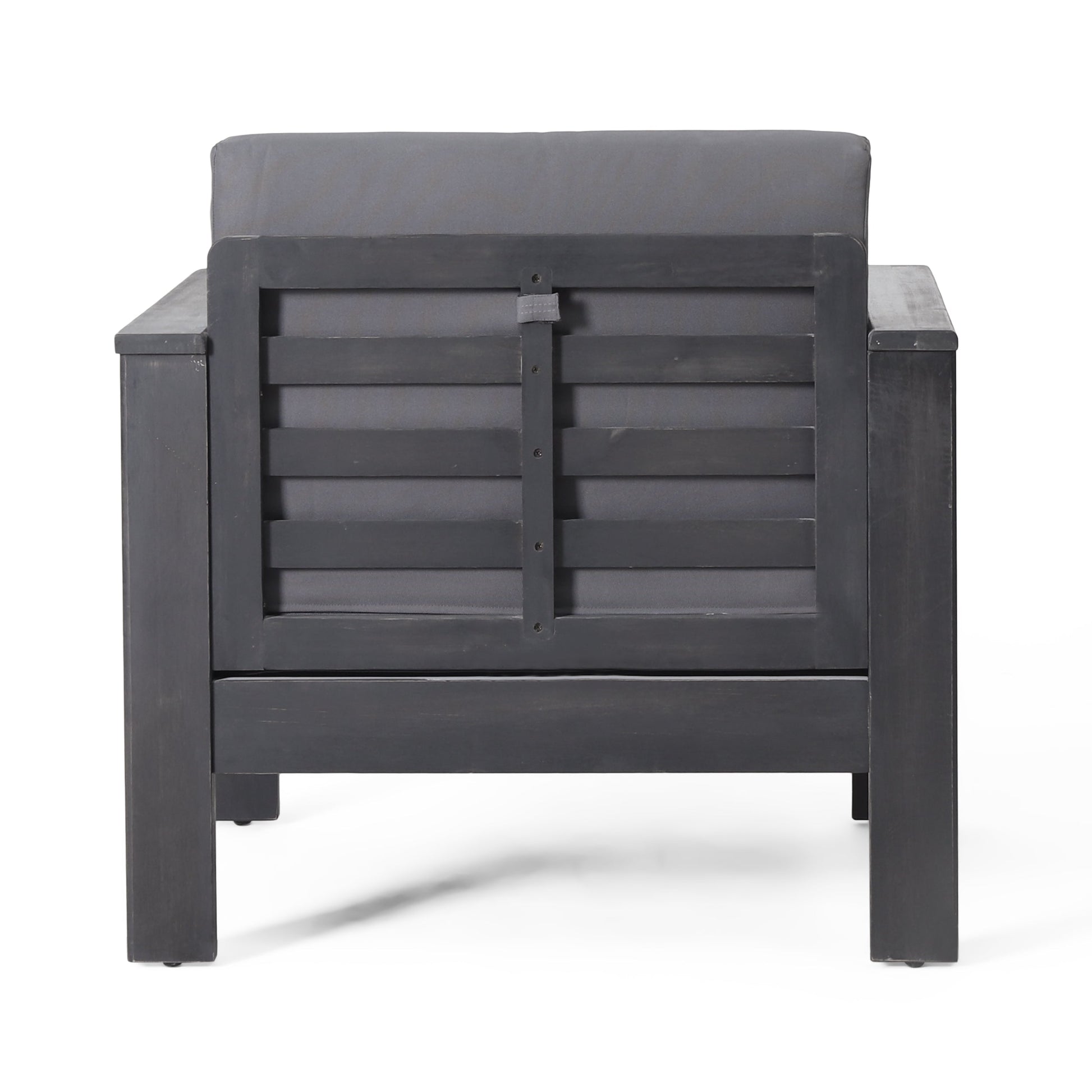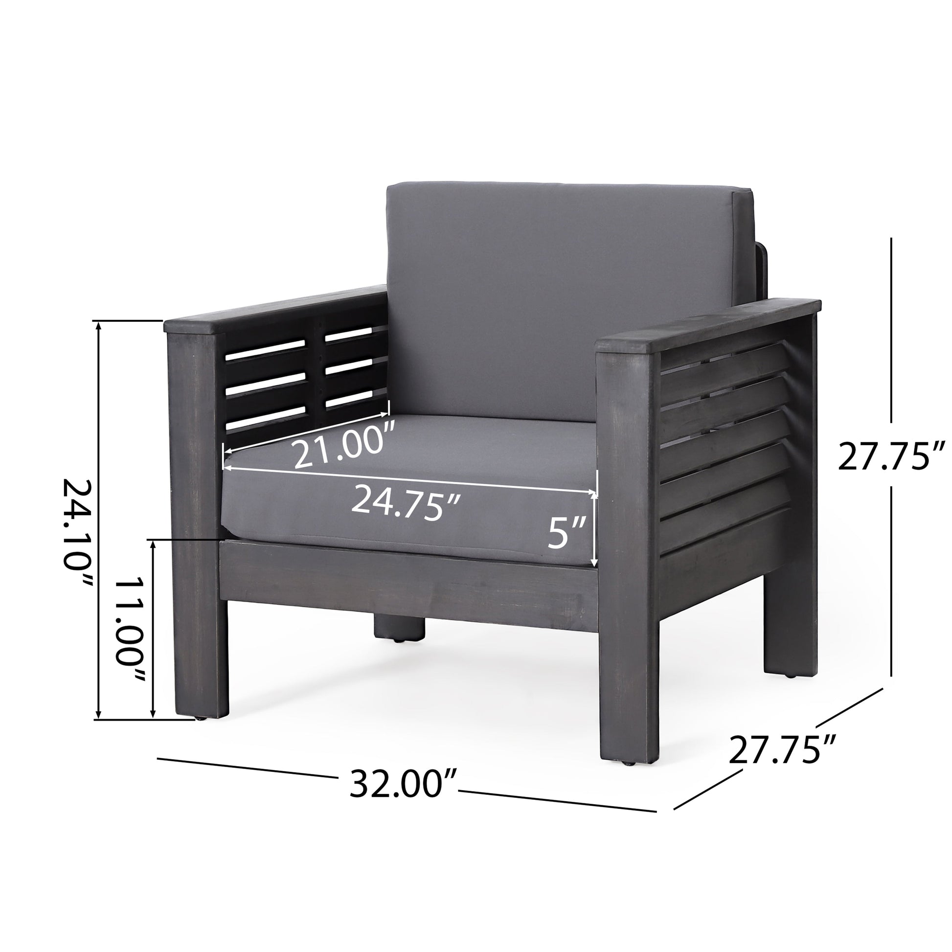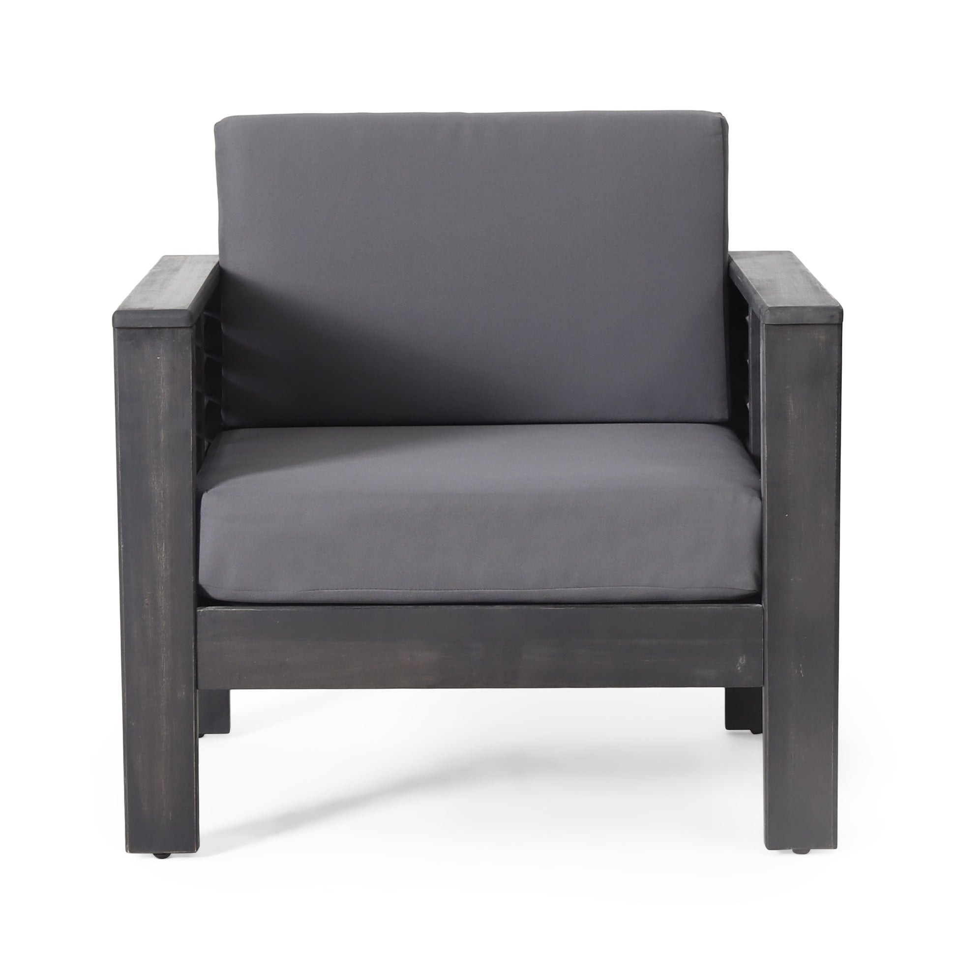 ( Set of 2) Outdoor Acacia Wood Club Chairs with Cushions, Dark Gray, 27.75"D x 32"W x 27.75"H