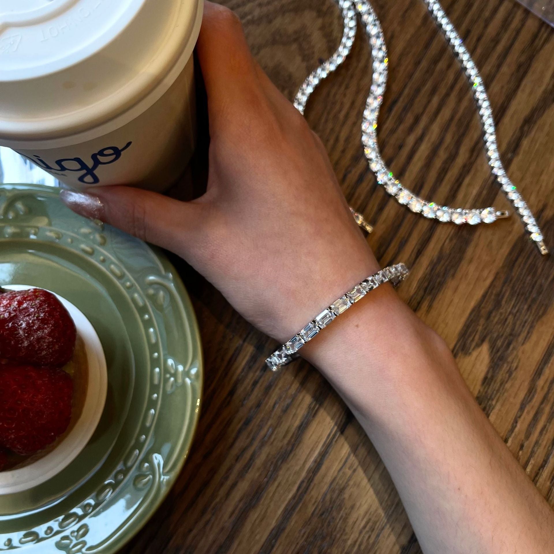With a length range of 6.5 to 8 inches, this bracelet is designed to fit comfortably on any wrist. Whether you're dressing up for an anniversary celebration or simply want to enhance your everyday style, this versatile piece is your go-to accessory. The unique rectangular zircon stones, measuring 4*6 mm, add a geometric flair that complements any outfit.
