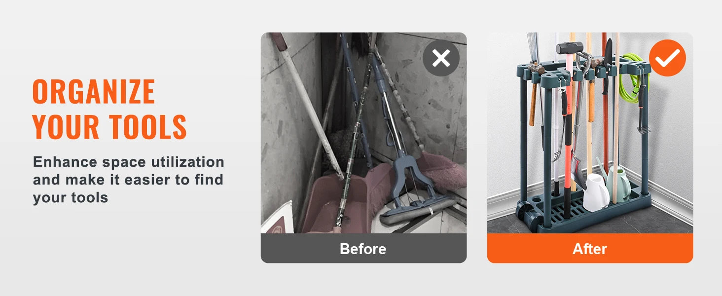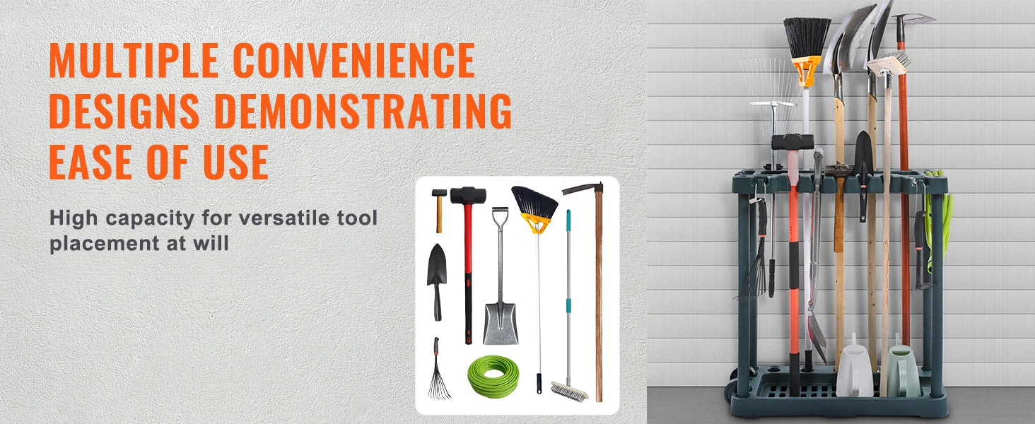 Make Any Space Tidy: Garage, garden, or room – our garden tool storage rack is your space-saving hero. Bringing order to your workspace has never been more fun or professional. It's time to get organized, and we've got just the thing!