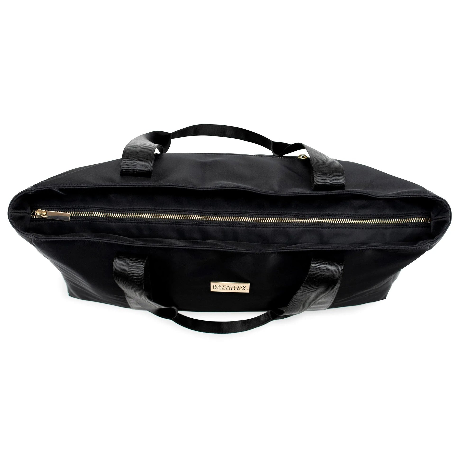 - Lined interior with BM monogram, zip closure, and interior organizational pockets.