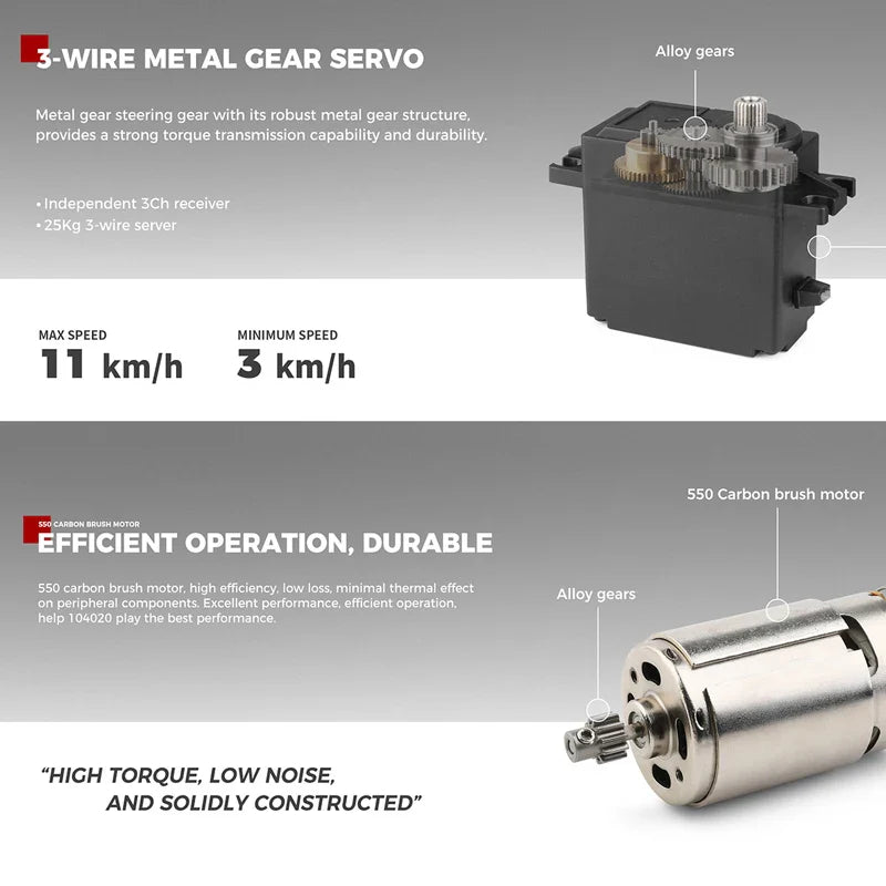 - 2.4G Remote Control: Smooth and responsive steering for precise control.